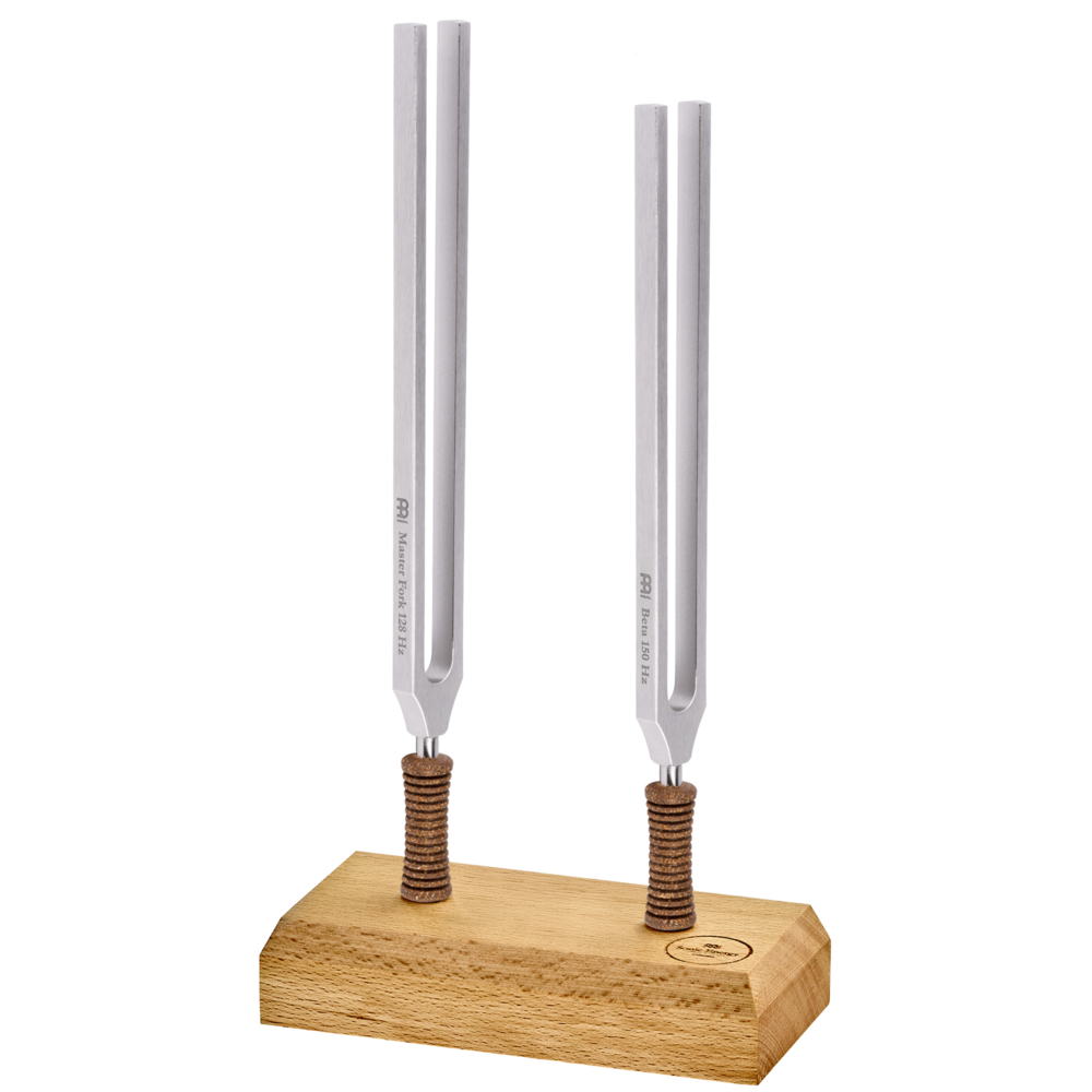 To create the binaural effect, activate the Binaural Therapy Tuning Fork and the Master Fork 128 Hz and hold them to the right and left ear. The brain will recognize the difference between the two frequencies, perceiving a third frequency that guides you into the desired brain wave state.
