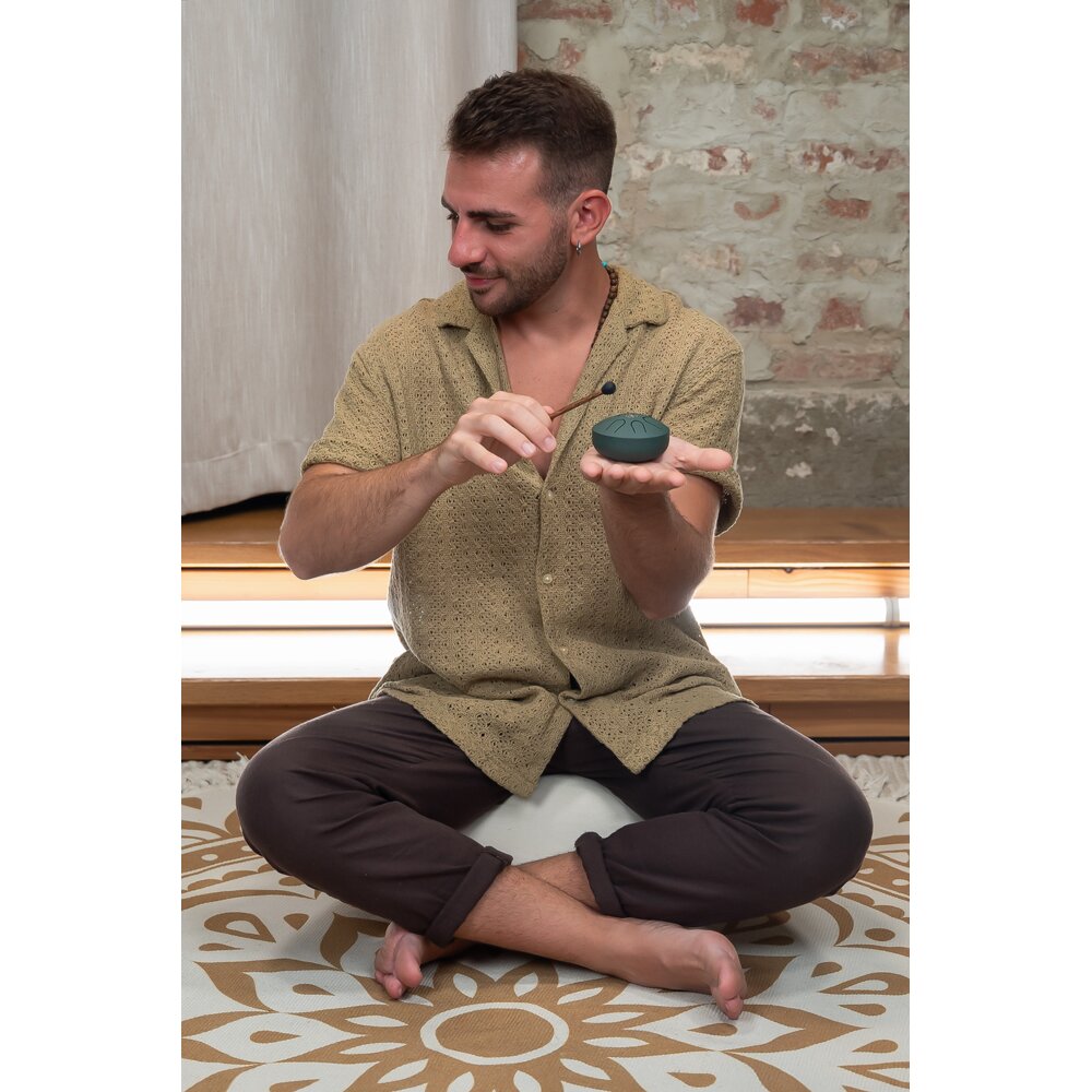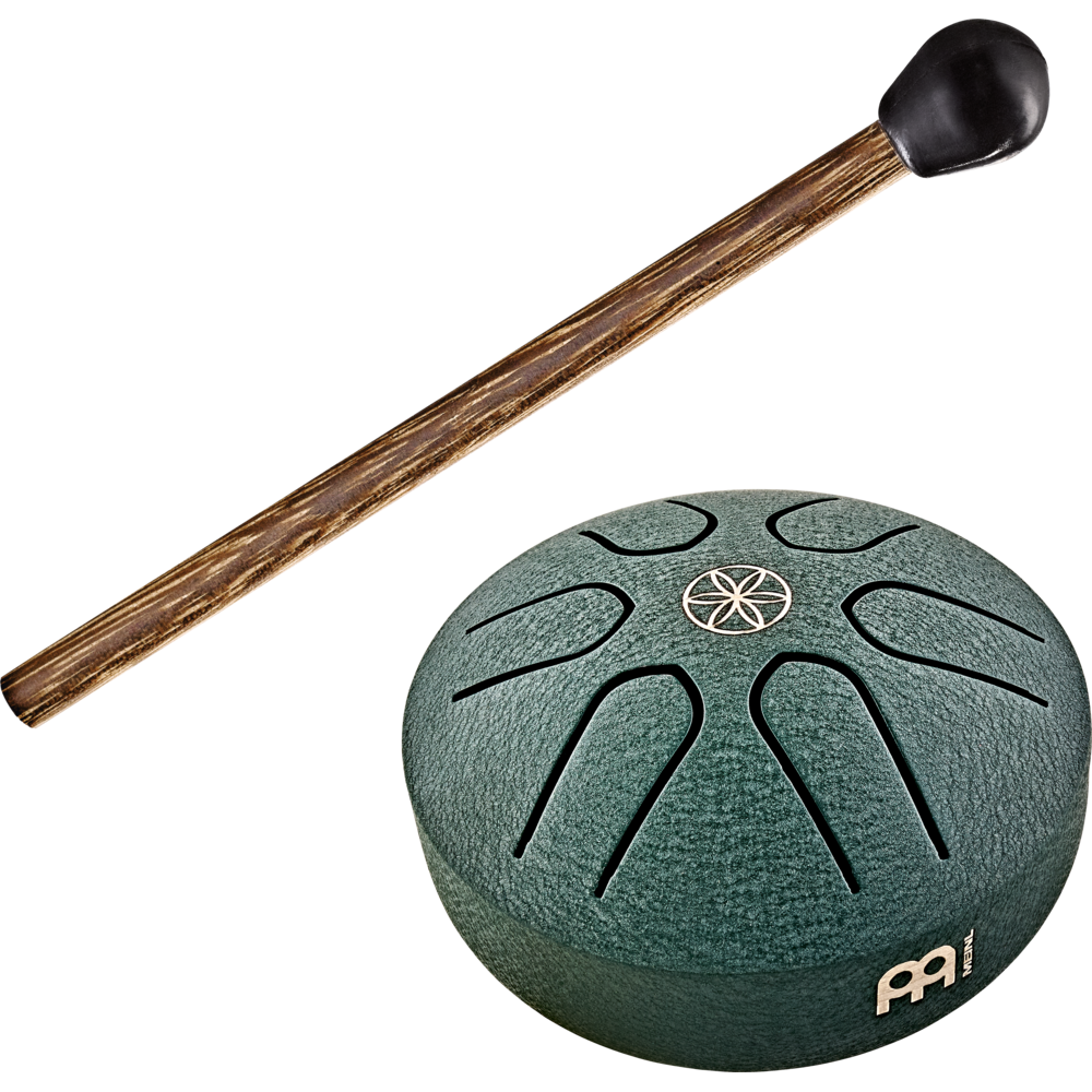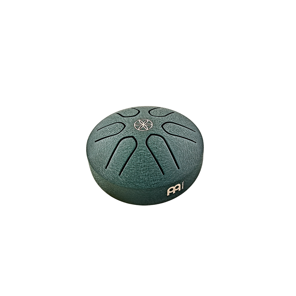 3″ POCKET STEEL TONGUE DRUM, A MAJOR, 6 NOTES, 440 HZ, DARK GREEN, GERM OF LIFE