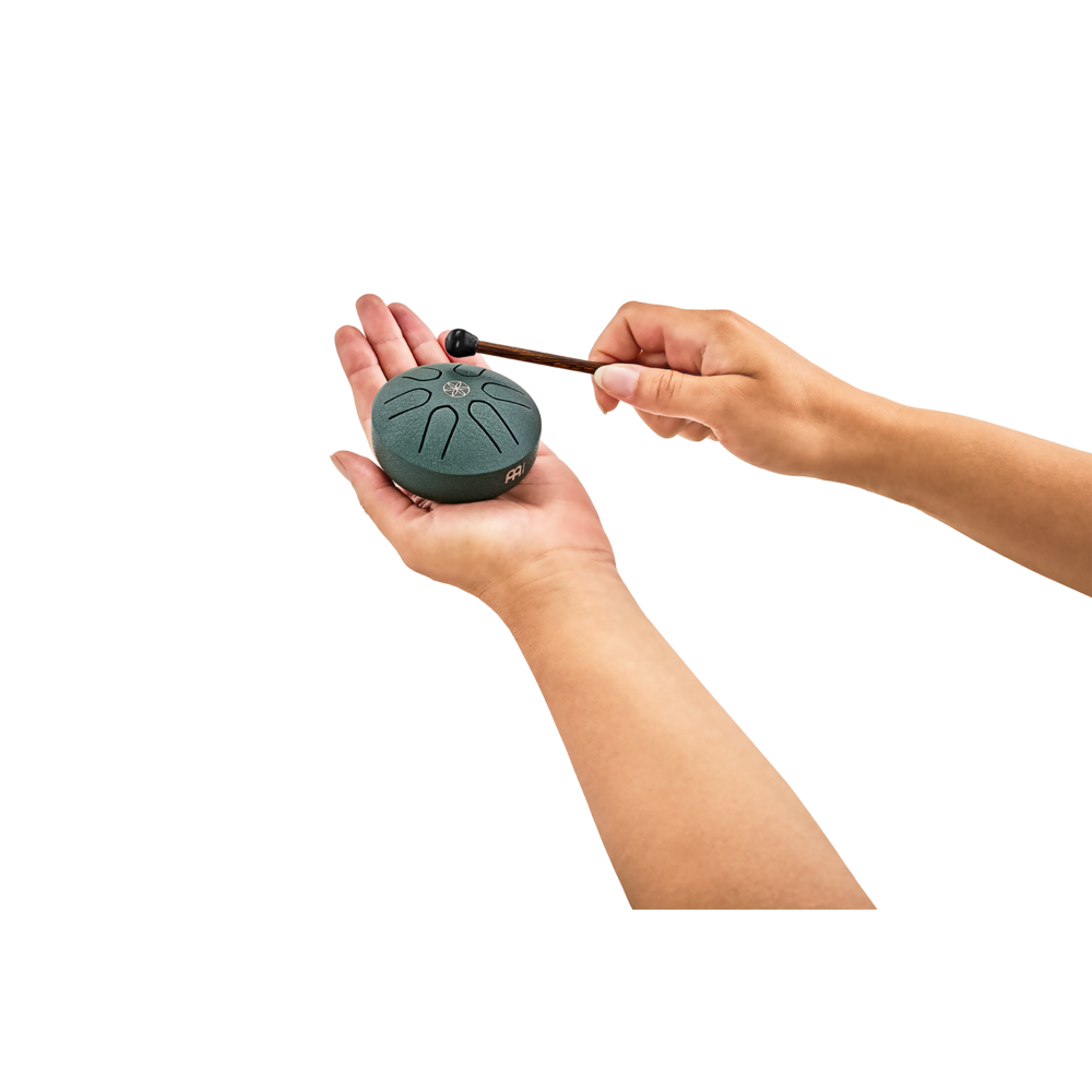 The Meinl Sonic Energy Pocket Steel Tongue Drum is suitable for any music lover, teacher, or sound therapist. It has a very compact size, making it ideal for on-the-go use. Whether in the studio, in the classroom, in the office, or on the coffee table, this drum with a diameter of only 3 inches (7.6 cm) can be played by anyone, anywhere, regardless of skill. Thanks to the pre-tuned scale, there are no wrong notes to play. The sound is joyful and soothing. It includes a wooden mallet with a rubber head.