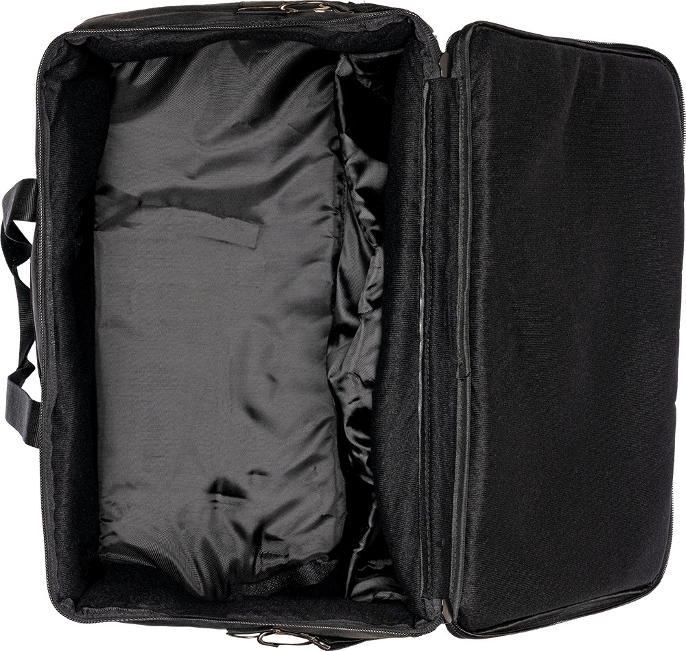 This mixed-use percussion bag can either be a large catch-all bag for your small percussion instruments, or you can use it to neatly compartmentalize your gear for easy access to certain items. Inside is a thick 420 denier synthetic fabric divider that easily sections out the back to organize your gear. The divider can be folded down to create one large open space if you prefer. The exterior 600 denier synthetic fabric is extraordinarily durable for the heaviest of road use. It’s designed for water, stain and abrasion resistance with a good degree of thickness and a PVC backing to give the bag additional structure. Equipped with reinforced, thick webbed PP carrying handles and an adjustable shoulder strap.