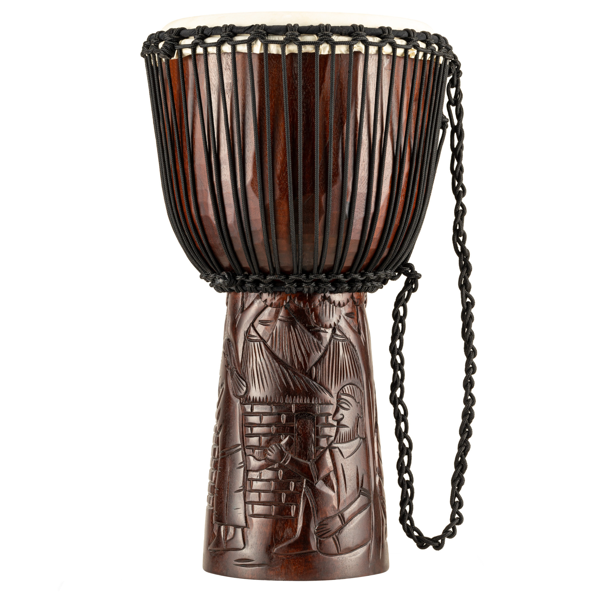The MEINL Professional African Djembes are expertly hewn from a solid piece of plantation-grown Mahagony Wood, and fitted with a hand-selected goatskin head. We use the traditional Mali Weave tuning system with high-quality HTP rope.